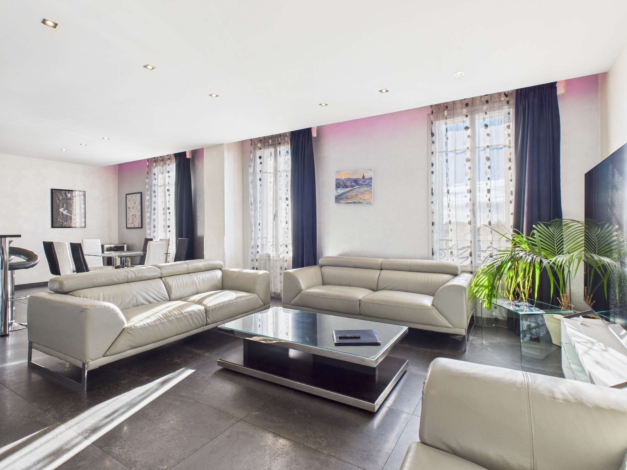 À seulement 450 m du Palais des Festivals, l'appartement Luxury situé au dernier étage est un lieu idéal pour séjourner. Avec une baignoire balnéo, 4 chambres et un toit-terrasse.
