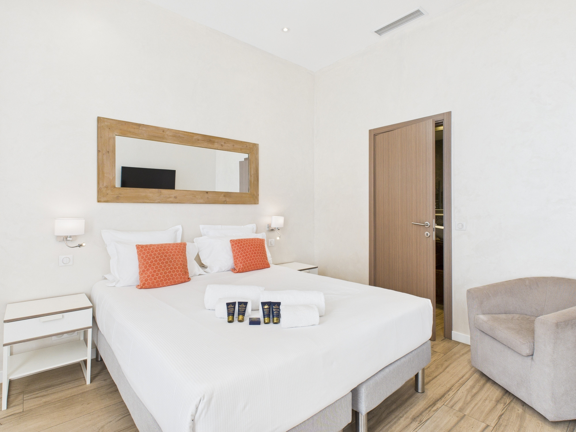 The Skandi flat embodies refinement and comfort. With its 4 bedrooms and 4 bathrooms, including a designer whirlpool bath, this bright, contemporary space overlooks the centre of Cannes. With its high ceilings, it creates a warm and serene atmosphere.